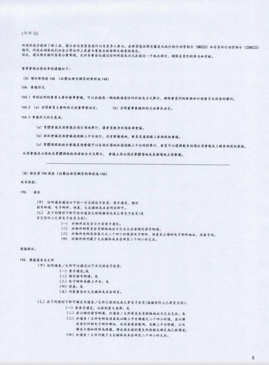 • 新修订章程