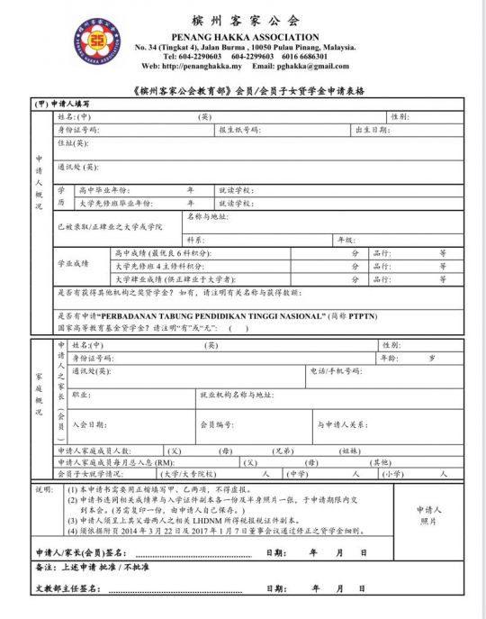 本贷学金定名为《槟州客家公会教育部贷学金》。