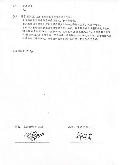 會長:高級拿督彭永添 總務:邱文發碩士 謹啟